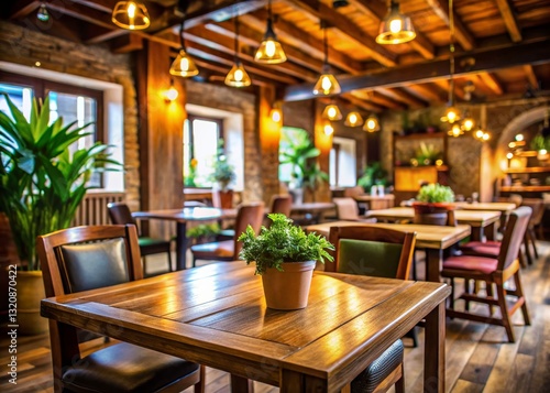 Cozy Brown Wooden Cafe Interior - Stock Photo