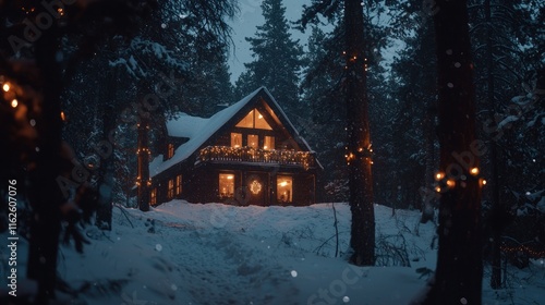 Cozy Cabin Illuminated Amidst Snowy Winter Forest