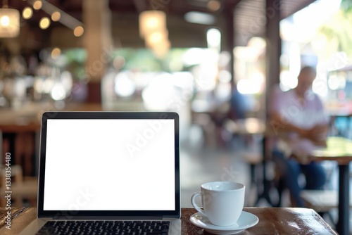 Cozy Café Workspace with Laptop and Coffee, Ideal for Remote Working