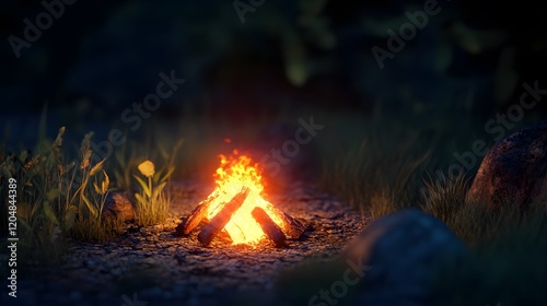 Cozy Campfire Glowing in the Dark Surrounded by Nature