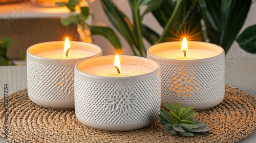 Cozy Candle Arrangement with Warm Flames and Greenery Background
