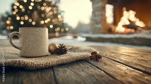 Cozy Christmas Fireplace Warm Mug Winter Scene