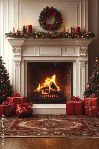 Cozy Christmas fireplace scene with decorations (1)