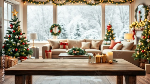 Cozy Christmas Living Room with Decorated Trees, Gifts, and Warm Lighting - Perfect for Holiday Celebrations