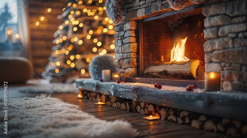 Cozy Christmas scene vibrant tree, warm fireplace, and festive decor in a welcoming home Happy New Year, banner