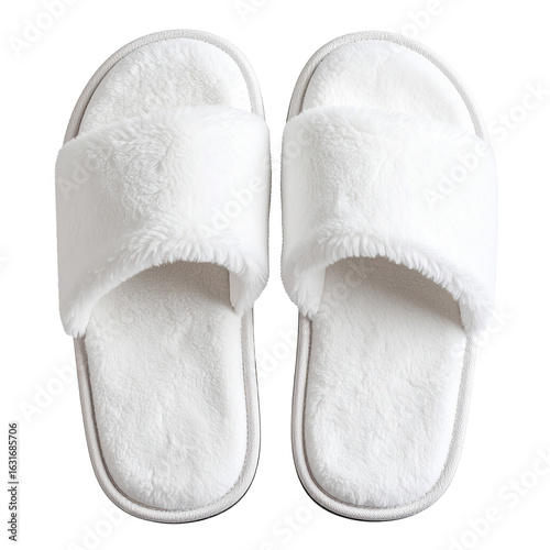 Cozy Comfort Isolated On White Background: Soft, plush slippers offer ultimate relaxation and unwinding, showcasing the pure simplicity of home comfort.