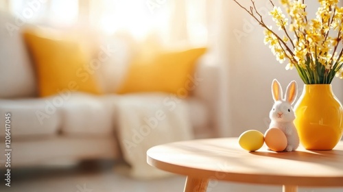 Cozy easter living room filled with colorful decorations and warmth