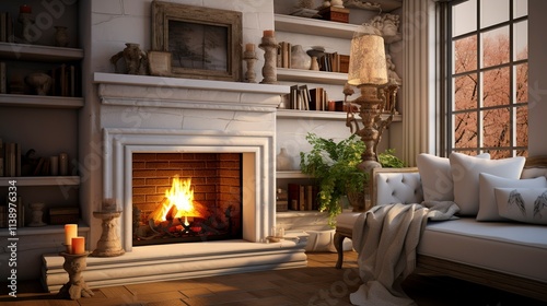 Cozy Fireplace Nook with White Mantel Shelf