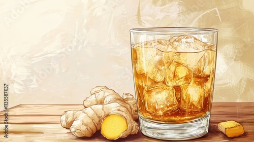 Cozy Hand-Drawn Ginger Ale in a Warm Kitchen Setting