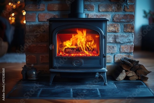 cozy home atmosphere with a warm stove and fireplace flames dancing as wood burns creating a comforting and inviting space during the cold winter season