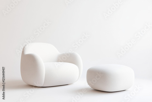 Cozy indoor seating arrangement with plush chair and ottoman in minimalist design