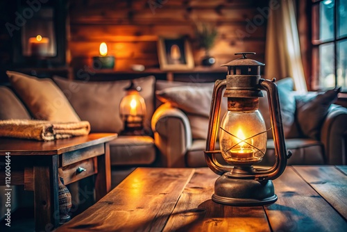 Cozy Kerosene Lamp Living Room Still Life Photography - Vintage Interior Design