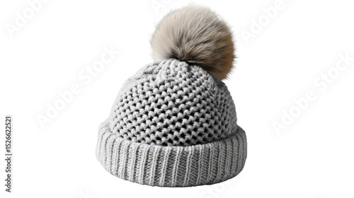 Cozy Knit Pom Pom Hat: A close-up view of a stylish knit hat with a fluffy pom-pom, showcasing warmth and fashion in this winter accessory.