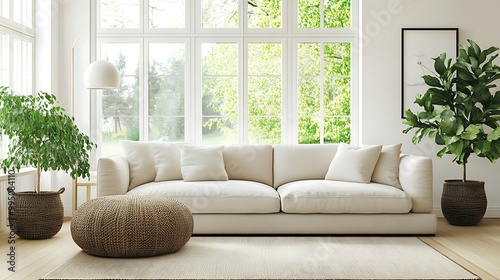 Cozy living room with a modern aesthetic and greenery.