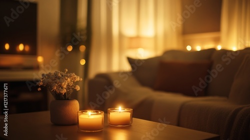 Cozy Living Room with Soft Focus Fireplace and Flickering Flames for Warm Home Decor