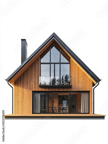 Cozy Modern Home: A contemporary architectural masterpiece showcasing a warm wooden facade, sleek lines, and panoramic glass windows, offering a glimpse into modern living