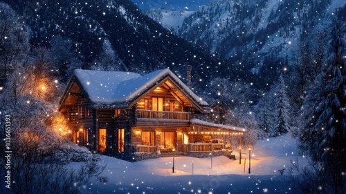 Cozy Mountain Lodge at Ski Resort in Winter Wonderland