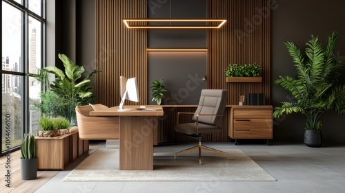 Cozy office setup featuring warm hues and patterned textiles for a stylish and inviting workspace atmosphere.