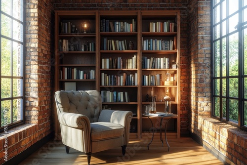 Cozy reading nook with built-in bookshelves
