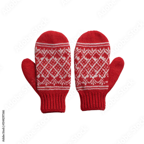 Cozy Red Mittens with Traditional Knit Pattern Perfect for Winter Activities and Warmth Transparent background or png