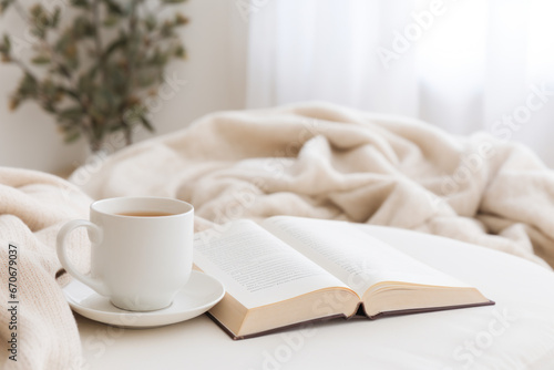 Cozy scene with a cup of coffee and an open book