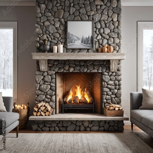 Cozy Stone Fireplace in Modern Living Room