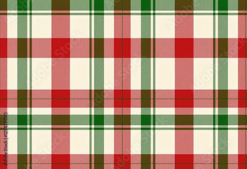 Cozy Vintage Christmas Plaid: Seamless Red, Green, and White Pattern on Cream, Rustic Country Style Fabric with Hand-Stitched Look for Holiday Projects