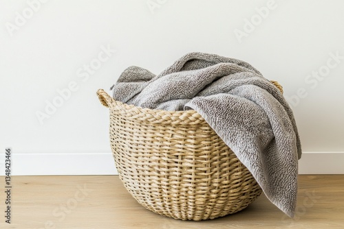 Cozy Wicker Laundry Basket Filled with Neatly Folded Towels