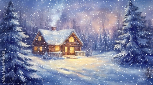 Cozy Winter Cabin in Snowy Woodland Landscape