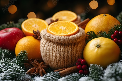 Cozy Winter Holiday Arrangement with Oranges, Pine, and Spices for Festive Decor