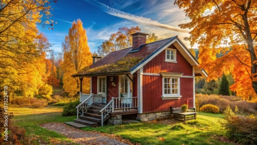Cozy Wooden Cottage Surrounded by Vibrant Autumn Trees