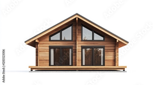 Cozy Wooden Home: A charming, modern log cabin with a distinctive A-frame roof, featuring large windows that offer inviting views, showcasing a warm and welcoming architectural design.