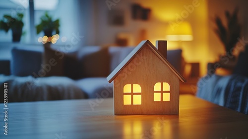 Cozy wooden house decoration living room interior design warm lighting close-up family comfort