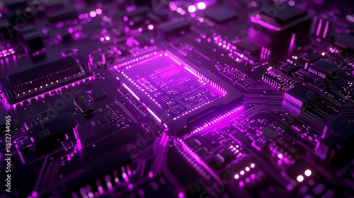 CPU Circuit Motherboard Technology Glowing Purple Lights High Resolution picture