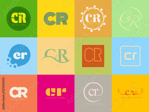 CR logo company template. Letter c and r logotype. Set different classic serif lettering and modern bold text with design elements. Initial font typography.