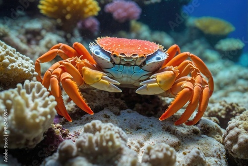 Crab Nestled Among Coral in a Vibrant Underwater Reef