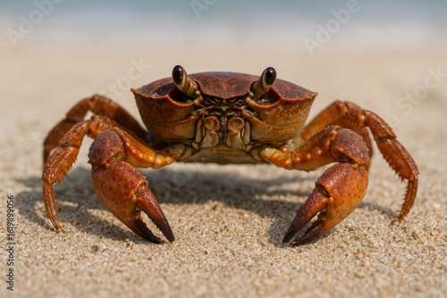 Crab on sandy beach.