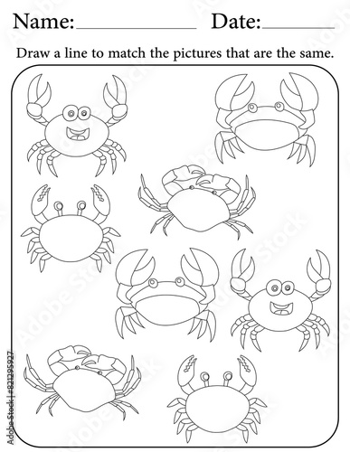 Crab Puzzle. Printable Activity Page for Kids. Educational Resources for School for Kids. Kids Activity Worksheet. Match Similar Shapes