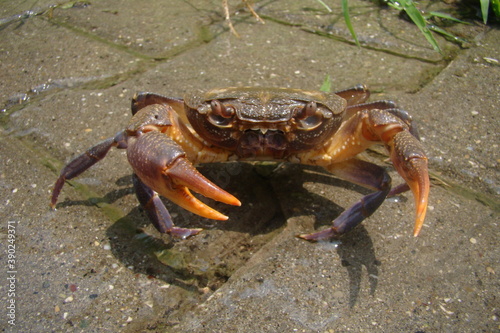 Crab Claw crab - Close up, closeup crab is roaming the street. Something strange Crab in the city animal, animals, wildlife, wild nature, see, river, beach