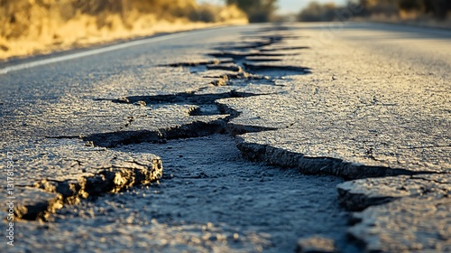Cracked Asphalt Road Surface Damage with Distorted Perspective View