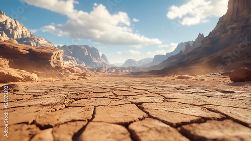 Cracked Desert Landscape Under Sunny Sky