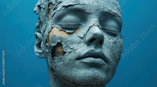 Cracked Earth, Serenity's Embrace: A Study in Blue Hues and Textural Depth
