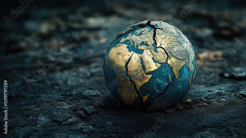 Cracked globe on desolate earth symbolizing environmental issues and global fragility