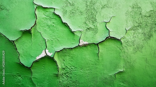 Cracked Green Paint Wall, Textured Green Surface, Rustic Wall Cracks