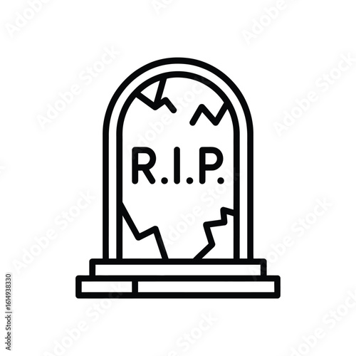 Cracked Tombstone with RIP Text Halloween or Death Concept Icon