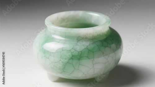 Crackled Glaze Ceramic Vessel with Green and White Gradient