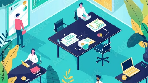 Craft an aerial view of a sophisticated gold trading environment in a flat