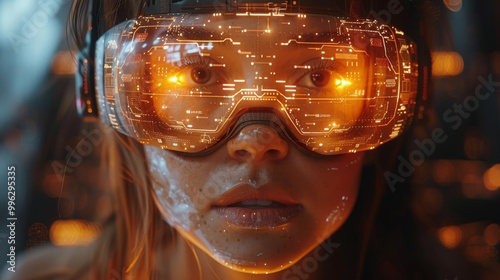 Craft an innovative setting where spinning holograms serve as interfaces for users interacting with AI-generated content through VR goggles.
