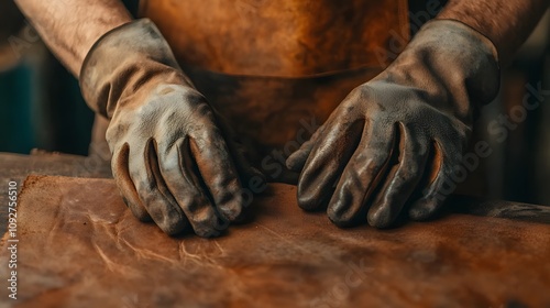Craftsman s Hands Shaping Raw Leather Hide