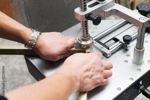 Craftsman working on frame in frameshop.